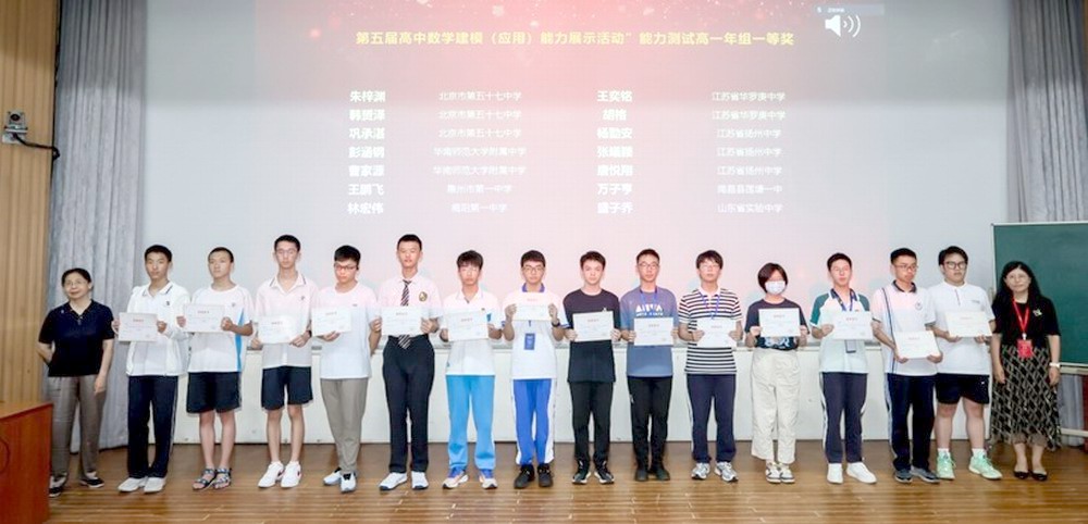 本次活动既有精彩的学术报告,也有优秀学子的思想碰撞。选手们先后经历了数场“硬核挑战”。 淮左名都启瑞祥,数坛新锐展锋芒。首先,来自全国各地的高中学子在北师大敬文讲堂和电子楼的指定区域进行了能力测试,扬州中学团队充分展现了将实际问题转化为数学语言的敏锐度。经过精彩的对决,杨勖安、张曦颖、唐悦翔三位同学脱颖而出,喜获高一年级组一等奖,多名同学喜获二等奖。
