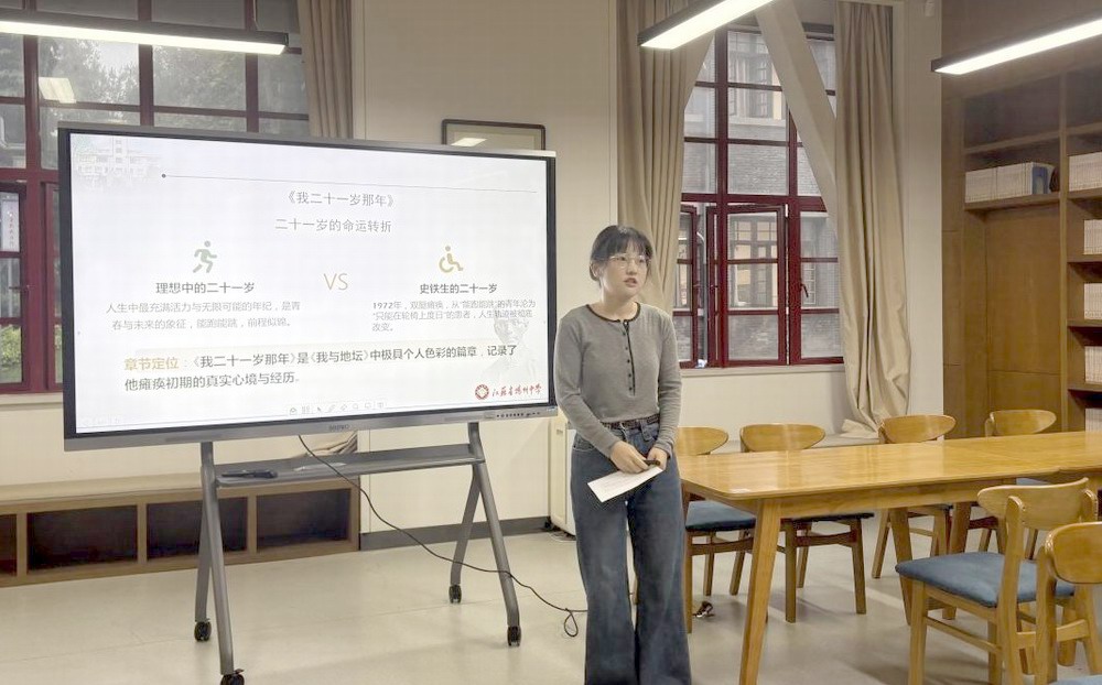 在随后的自由交流环节,现场气氛温馨而热烈。来自不同学科的老师们结合自身的教学实践与生活体验,纷纷畅谈阅读感悟。有老师从书中读出了“挫折教育”的深刻启示,有老师探讨了“孤独与创造”的内在关联,还有老师分享了如何将文本中蕴含的生命态度传递给学生,引导他们建立积极的人生观。思想的火花在交流中碰撞,共鸣在分享中升华,充分体现了读书沙龙促进“科学与人文融合”、提升教师专业素养与人文情怀的创办宗旨。 作为扬州中学教师队伍建设与校园文化建设的重要载体,“青春藏修”读书沙龙持续为教师们提供了一个涤荡心灵、充电蓄能的平台。本期活动通过对《我与地坛》的深度共读与研讨,不仅进一步营造了校园内“乐读、善思、共享、共进”的浓厚氛围,更激励着每一位教育工作者在书香中汲取力量,拓宽视野,开阔胸怀,共同守护和建设属于江苏省扬州中学人的精神家园,以更丰盈的内心世界投身于立德树人的崇高事业。