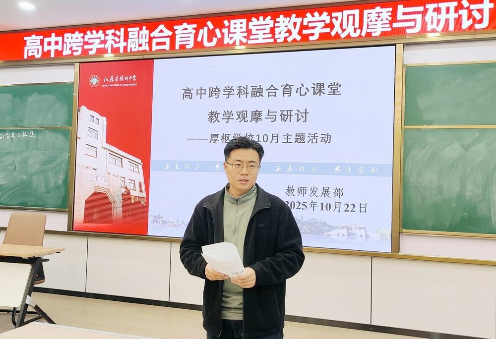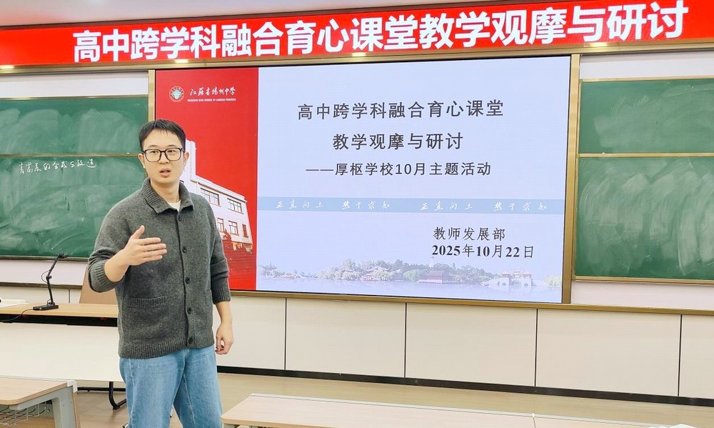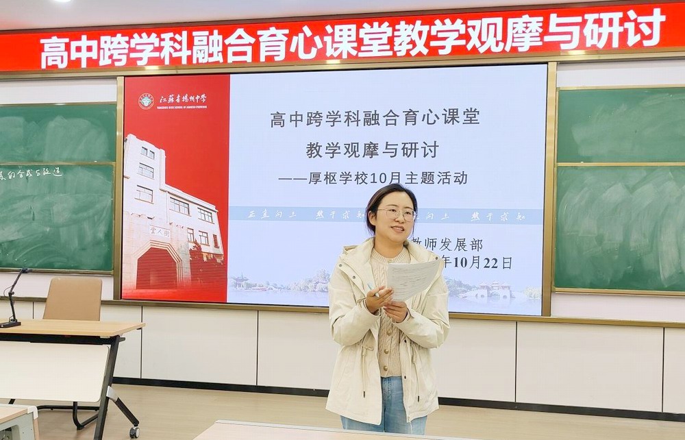 为深入探索跨学科教学的有效路径,提升青年教师融合育人能力,2025年10月22日下午,厚枢学校成功举办了以“高中跨学科融合育心课堂教学观摩与研讨”为主题的10月研修活动。本次活动由厚枢学校班主任郭金花老师策划和主持,全体厚枢学校青年教师齐聚一堂,共同观摩并研讨了一节别开生面的跨学科融合育心课。