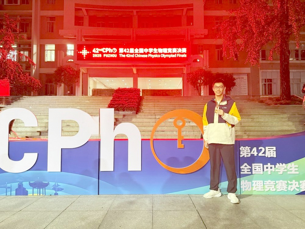 全国中学生物理竞赛作为国内中学生物理学科的最高级别赛事,始终以“促进学科能力提升、发掘科学后备人才”为使命,更是检验学子科学素养的“试金石”。本届比赛汇聚了全国各省市的590名物理顶尖学子,能在这样高规格、高竞争的舞台上脱颖而出,背后是远超常人的付出与积累。 “功崇惟志,业广惟勤。”回溯许肇哲的求学路,对物理学科的热爱与执着始终是他前行的动力。让他不仅在课内学业中稳居前列,更在竞赛道路上不断突破自我。一年多的备赛时间里,他主动深入地学习大学物理知识,常常为吃透一道难题,反复研读大学物理教材相关章节;主动整理竞赛真题的解题思路,更是长时间待在学校物理发展创新中心,搭建模型验证理论。从市级竞赛的初露锋芒,到省级决赛的稳步晋级,再到全国赛场的摘得银牌,每一步都凝聚着他日夜演算的汗水与永不言弃的坚持。这块闪亮的银牌,是对他无数个日夜辛勤付出的最佳褒奖。