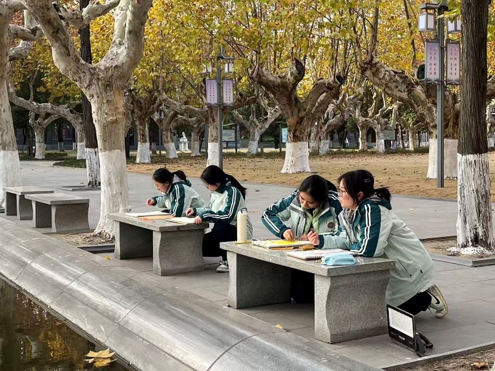 深秋的江苏省扬州中学校园,银杏铺就金黄小径,枫叶晕染树人堂前,桂花飘出一缕甜香。