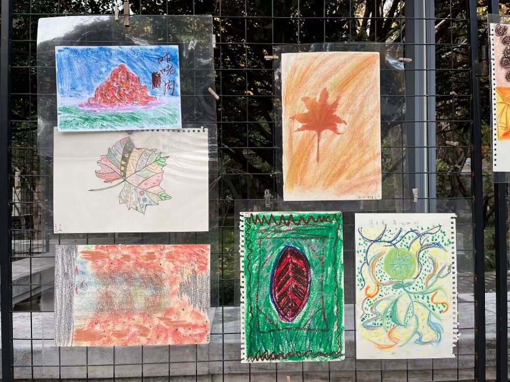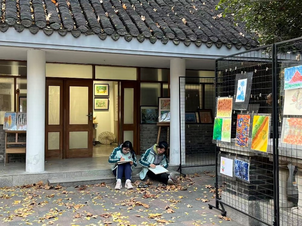 不同于传统的秋日写生,一群高一学生手持画本与画笔,在银杏树下、树人堂池泮边驻足凝视,他们并非复刻眼前的秋景,而是以抽象绘画的 “点、线、面” 为密码,解构叶片的脉络、枝干的交错、光影的明暗,完成一场别开生面的 “秋意重构” 创作。