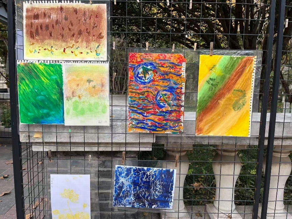 此次创作活动不仅让抽象绘画知识 “落地生根”,更培养了学生的观察力与创造力。有的作品以极简的黑白灰三色,通过点的聚散、线的粗细、面的虚实,勾勒出校园轮廓;有的作品则大胆运用红、黄、橙等暖色调,以强烈的色彩碰撞展现秋日的热烈; “学生们的作品充满了想象力,他们用专业的美术语言,把对秋天的感受转化为可视的几何符号,这正是艺术教育想要达到的效果。”美术组张晨老师总结道。通过这次创作,学生们纷纷表示以前觉得抽象画很抽象,这次实践后才发现,它其实源于对生活的细致观察。原来秋天的美,不仅在于具象的落叶与花香,还藏在点线面的巧妙组合中。” 美术组精选部分优秀作品,在小花园进行校园展览,让更多师生感受抽象艺术与秋日校园的碰撞之美。深秋的扬州中学,秋意正浓,创意正盛。那些由点线面构成的秋景作品,不仅是学生们艺术才华的展现,更是他们用青春视角解读自然、用专业知识诠释生活的生动写照。在这个充满诗意的季节里,抽象艺术的几何之美与秋日校园的自然之美交相辉映,谱写出一曲别样的 “秋日赞歌”。