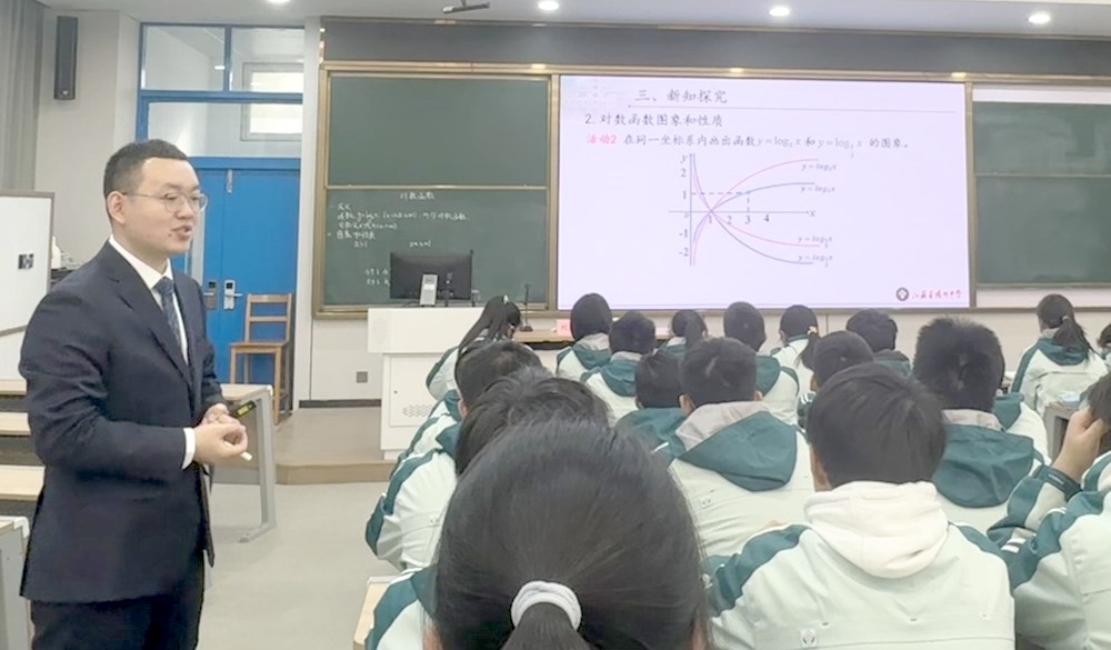 数学 南京外国语学校的费杨老师用问题链串联数学课堂,引导学生自主探究对数函数,在互动中梳理指数与对数的关联,总结时既注重梳理对数知识,也提炼函数学习的思想方法。 江苏省扬州中学的刘永杰老师带着学生严谨梳理函数研究路径,从情境到概念再到性质,引导学生深挖研究新函数的思维逻辑。例题的选取具有典型性,帮学生扎实掌握对数函数的相关内容。 天津市南开中学的谭毅老师用精炼的语言,亲和的语气讲透对数函数的性质,以导向性问题层层追问,让学生在深度思考里理解对数函数的核心知识点。 最后,扬州大学硕士生导师濮安山教授作为评课专家,高屋建瓴地对三节课进行精彩点评,肯定了三位老师扎实的教学功底,剖析各自的教学特色,指出目前的数学课堂更应该关注数学思维活动教学,只有在课堂上扎实进行思维训练才能帮助学生建构自己的认知结构从而提高自身的认知水平以及解决问题的能力,最终落实核心素养。