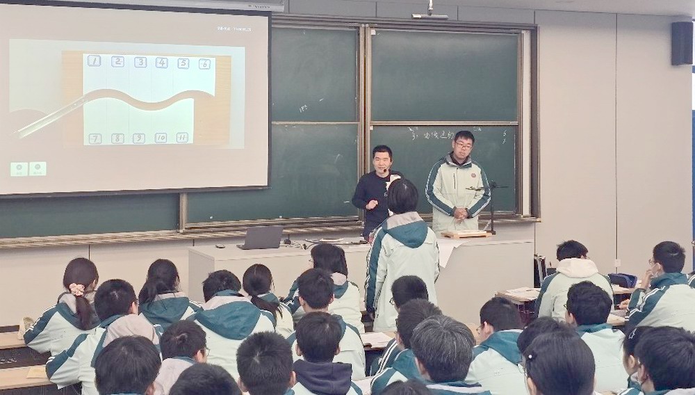 物理 南京外国语学校的彭尧吟老师、重庆市第一中学校的代超老师和我校的刘小兰老师分别选择三个不同年级和课题,为大家带来精彩纷呈的三节示范课。 彭尧吟老师的高三磁场复习课,将高考题目融会贯通,变式延伸,层层递进,课堂上老师与同学思维激烈碰撞,表现出非常好的分析、引导能力,折射出对知识的深刻的理解和优化处理能力,复习效果良好。 刘小兰老师的《磁场对通电导线的作用力》,创新DIS 实验成为全场的最亮点。传感器精准捕捉数据、直观呈现规律,让抽象的安培力知识 “看得见、可量化”,大幅提升课堂效率。 代超老师带来的《曲线运动》,通过巧妙的情境创设,精准的问题设置和有趣的物理实验,将抽象运动规律具象化,助力学生快速理解,课堂效果显著。 最后,潘志民教授对三堂示范课进行了精彩的点评,对三节课表示认可,同时也提出了宝贵的优化方案。进而,他将论述延伸至更高层面,对批判性思维在高中物理教学与课堂实践中的深度融合路径进行了深入阐述。