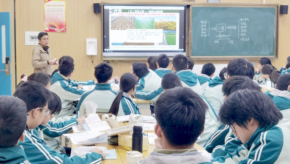生物 杭州学军中学吴梦霞老师以“碳循环”模型构建为主线,以学生呼出的二氧化碳为切入点,引导学生结合生活经验搭建基础模型,再借助AI工具补充相关资料,促进学生构建完整的碳循环体系。 南京外国语学校方山分校丁佳佳老师以扬州大鹅养殖情境引入课题,引导学生分析整个过程中碳排放超标以及鹅肉中铅含量超标等问题的解决方案,贯通碳循环、生物富集等概念。课堂上利用AI对学生设计的模型进行评价并加以完善,加深学生对知识的理解。 扬州中学涂昕昀老师以学生对课前合作制作生态缸过程的汇报开始本节课的教学,由生态缸扩展到生物圈,学生通过自主建模理解碳循环的过程,并结合温室效应的问题补充蓝碳、红树林的保护等知识,让学生理解海洋生态系统在双碳目标中的重要作用。 授课结束后,专家高度肯定三位教师的课堂表现,他指出三位教师积极运用AI展示了面向未来的教学意识,并强调课堂应从知识传授转向培养学生的信息获取、整合与创新能力,真正的优质课堂应紧扣核心素养并联系真实情境。