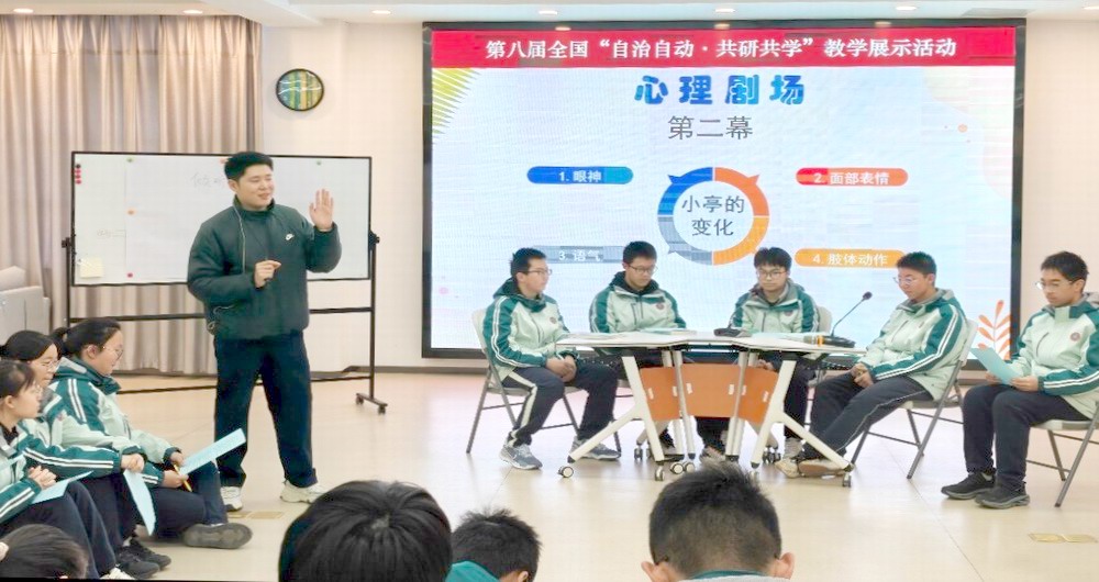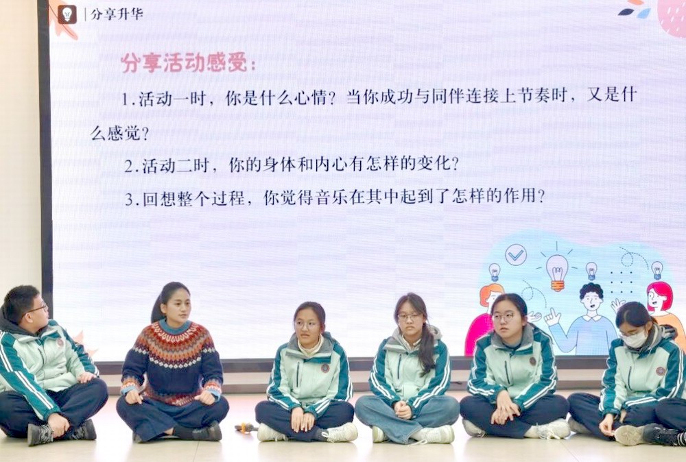 融合育心 五育融合育心课程是我校的校本特色课程,主要包含心理健康专题育心、全学科育心、活动育心和实践育心等,将心理健康教育有机融入学生成长的全过程。 心理组杜圃庆老师带领学生开展了《点亮人际:沟通有方法》团体心理辅导。活动通过团体游戏、心理情景剧等方式,探讨了倾听的本质,引导学生感受良好倾听和无效倾听的差异,有效提高了学生的人际沟通能力。 艺术组吴楚君老师以《音乐开启心灵之窗》为题,开设了一节音乐融合育心课程。吴老师通过浪花传递的方式,带领学生们感受音乐节奏。采用冥想的方法,让学生们与自我内心对话。 扬州市教育科学研究院教科所夏心军所长进行专家点评。夏所长指出,团体心理辅导能很好地激发学生的主体能动性和创造性,体现了个性与教育导向的融合;音乐课精准呈现五育融合育心架构,将音乐与心理健康教育融合对学科建设与课堂教学改进具有重大意义,充分彰显五育融合育心理念。该课程也为我校进一步探索融合育心的教学模式奠定了良好基础。