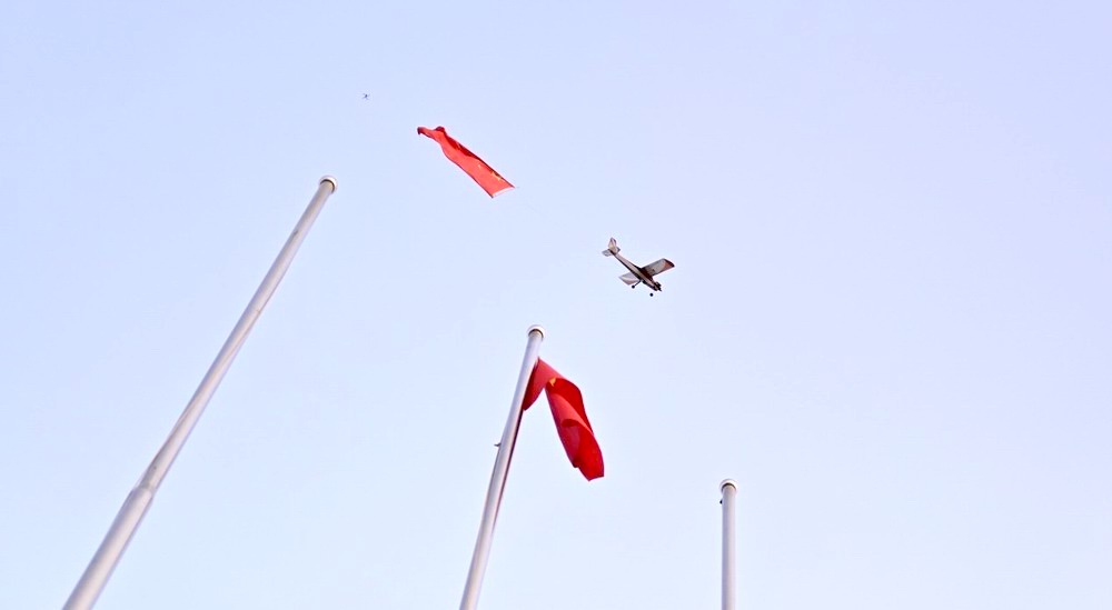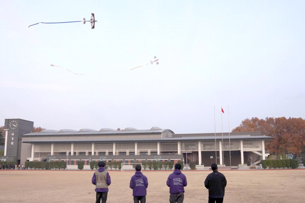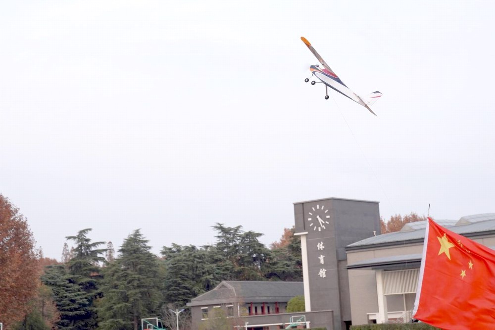 下午3时45分,操场上空,南航航模队的精彩表演拉开序幕。各式航模在蓝天之下灵活穿梭、翻转盘旋,时而低空掠行,展现精准操控技艺;时而高空俯冲,带来强烈的视觉冲击。看台上的师生们阵阵欢呼,掌声与惊叹声此起彼伏,为这场科技盛会营造了热烈的氛围。