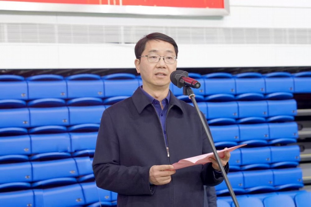 与此同时,体育馆内正进行着一场沉浸式科技体验。开幕式伊始,校党委书记薛义荣致辞。薛书记指出,我们正处在科技日新月异的伟大时代,“嫦娥”探月、“天问”巡火、“神舟”问天、“北斗”指路等重大科技成就,彰显着科技创新重塑世界格局的磅礴力量。回望扬中百年校史,从仪董学堂时期的格致课程,到如今“飓风”科创社、“阿不童”机器人社等社团的蓬勃生长,从历届校友中涌现的两院院士,到同学们在全国青少年科技创新大赛中摘金夺银的亮眼成绩,重视科学教育、勇于科技探索早已镌刻在学校的办学理念中。作为全国中小学科学教育实验校,培育兼具科学素养与创新精神的时代新人,既是百年扬中回应时代召唤的责任,更是对“正直向上,热于求知”优良校风的生动践行。他鼓励全体同学永葆好奇心与求知欲,敢于大胆质疑、勇于动手实践,在协作中凝聚智慧,在比拼中突破自我,让崇尚科学、勇于创新的氛围浸润校园每一个角落。