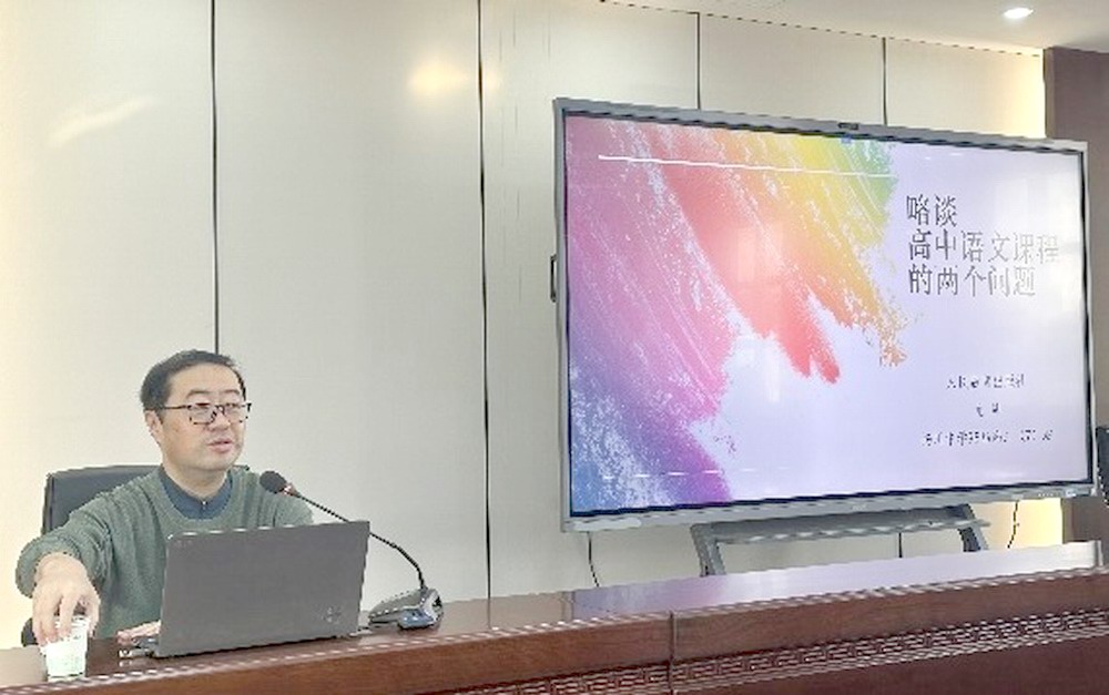6日上午,人民教育出版社编审、中学语文编辑室主任,也是我校95届校友的尤炜老师聚焦《略谈高中语文课程的两个问题》,围绕“学习任务群”与“学习与研习”两大关键词,对接新课标精神,结合教材编写前沿动态,为一线教师廓清迷雾、正本清源。