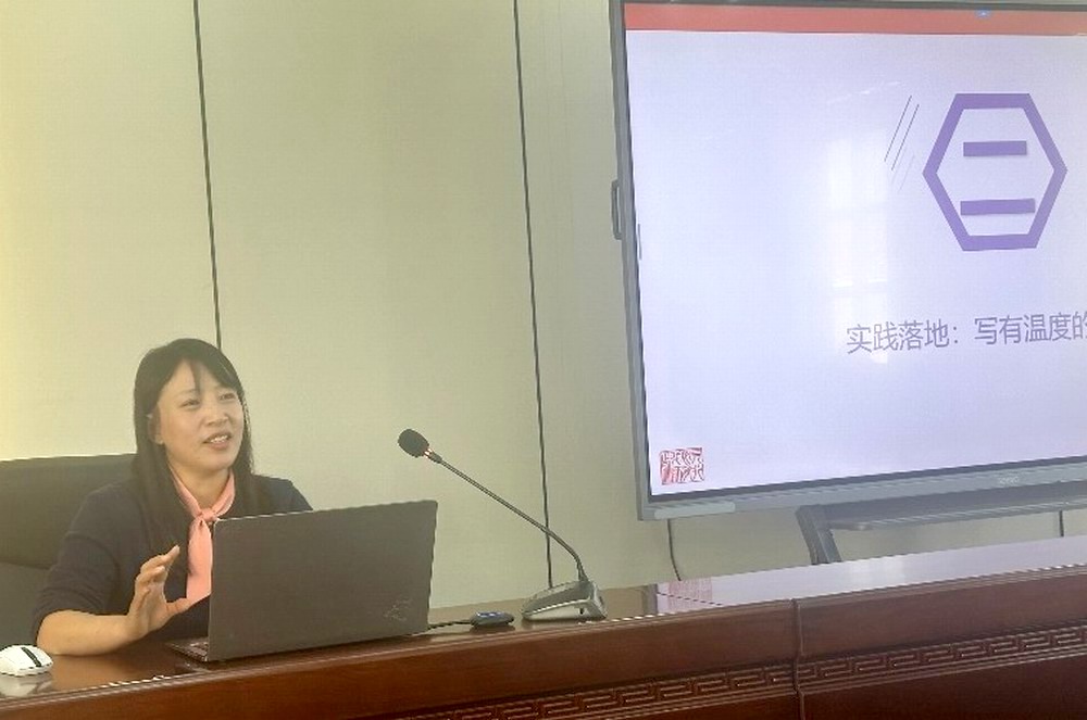 当日下午,《中学语文教学参考》编辑部编审曹海英老师则以《破“AI”迷思,坚守笔端初心》为题,就论文选题、架构、投稿等环节步步导引,更在人工智能时代语境下,重申教育写作的价值坚守,令在座教师深感切要。