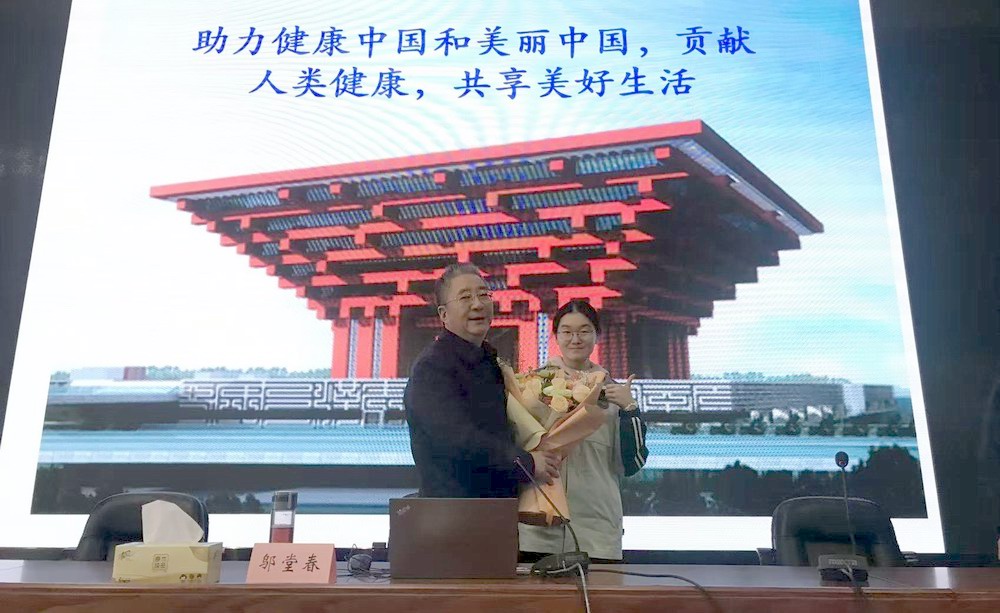 为表达对邬院士的诚挚感谢,学生代表孙心悦同学在讲座结束后向邬院士献上鲜花。